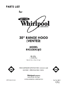 Whirlpool Hood RH2330XLW2 Repair Parts