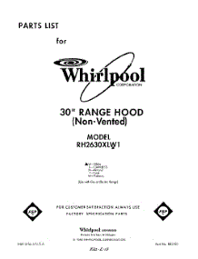 Parts for Whirlpool RH2630XLW1 Range Hood