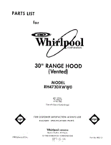 Whirlpool Hood RH4730XWW0 Repair Parts