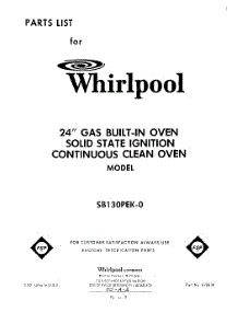 Whirlpool Model SB130PEK0 parts in stock and ready to ship!