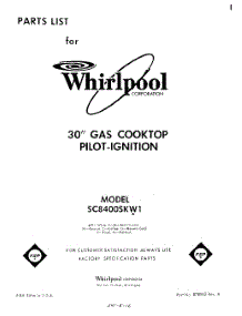 Parts for Whirlpool SC8400SKW1 Gas Cooktop