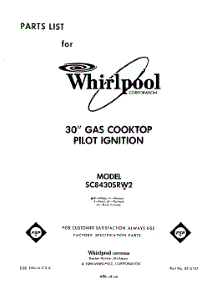 Parts for Whirlpool SC8430SRW2 Gas Cooktop