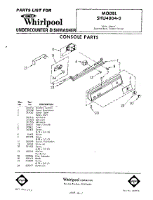 Whirlpool Dishwasher SHU40040 / Repair Parts