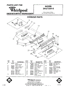 Whirlpool Dishwasher SHU75040 / Repair Parts