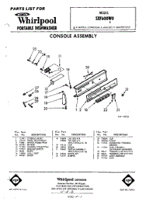 Whirlpool Dishwasher SXF600W0 / Repair Parts