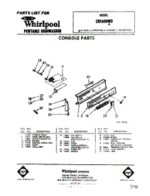 Whirlpool Dishwasher SXF600W3 / Repair Parts