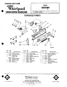 Whirlpool Dishwasher SXU325W0 / Repair Parts