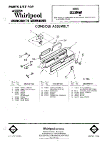 Whirlpool Dishwasher SXU350W1 / Repair Parts