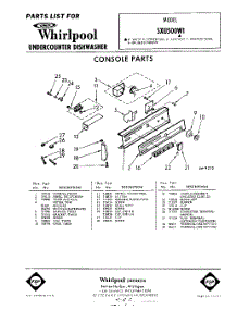 Whirlpool Dishwasher SXU500W1 / Repair Parts
