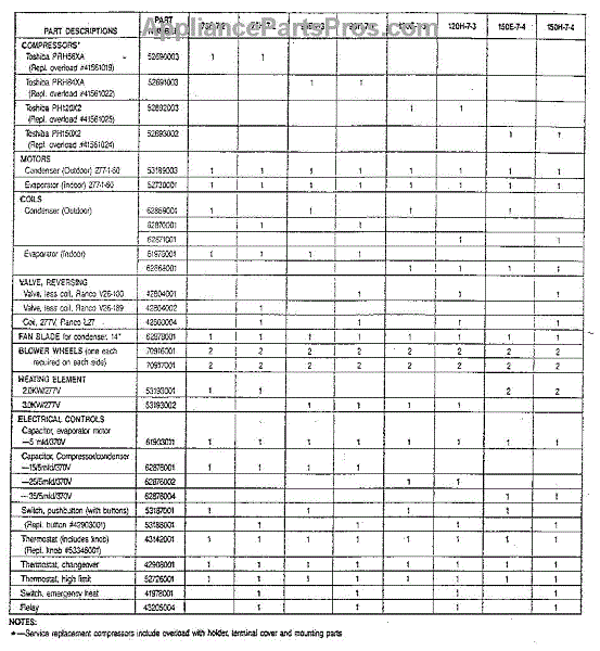 Parts for Climette/Keeprite/Zoneaire SC120E-7-3: Parts List Parts