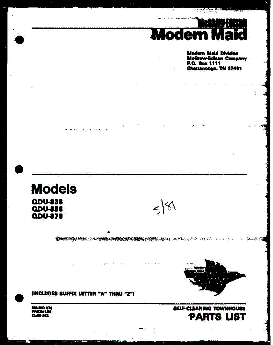 Parts for Modern Maid QDU-858G: (Qdu-838A) (Qdu-858A) (Qdu-878A) (Qdu-838B) (Qdu-858B) (Qdu-878B) (Qdu-838C) (Qdu-858C) (Qdu-838D) (Qdu-858D) (Qdu-858E) (Qdu-838G) (Qdu-858G) Parts