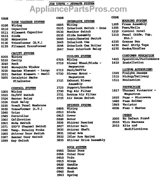 Parts for Amana FS-14EVP.000: (Cjw1008.B) (Cjw1008.Z) (Cjw1040.B) (Cjw1040.Z) Parts