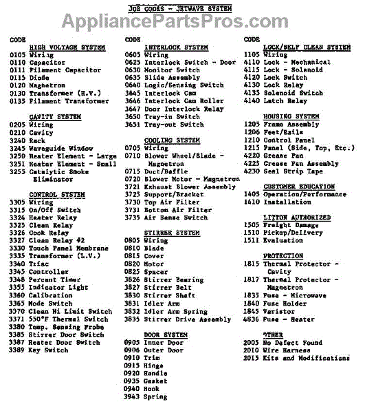 Parts for Amana JW1040.100: (Jw1008.000) (Jw1008.100) (Jw1008.200) (Jw1008.A) (Jw1008.B) (Cjw1008.A) (Jw1040.000) (Jw1040.100) (Jw1040.200) (Jw1040.A) (Jw1040.B) (Cjw1040.A) Parts