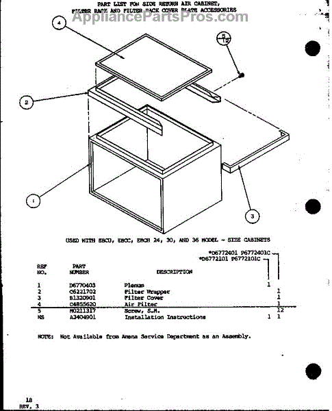 Parts for Amana D6772202: (D6772101 / P6772101c) (D6772401 / P6772401c) Parts