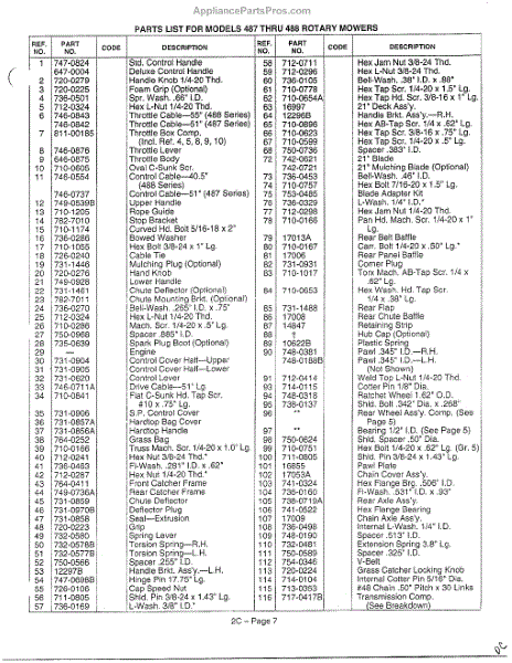 Parts for Mtd 126-478N000: Parts List Model 487-488 Text Only Parts