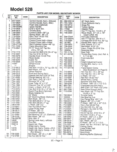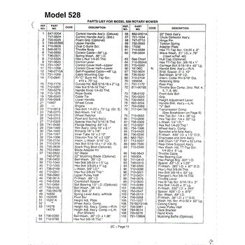Parts for Mtd 126-478N788: Parts List Model 528- Text Only Parts