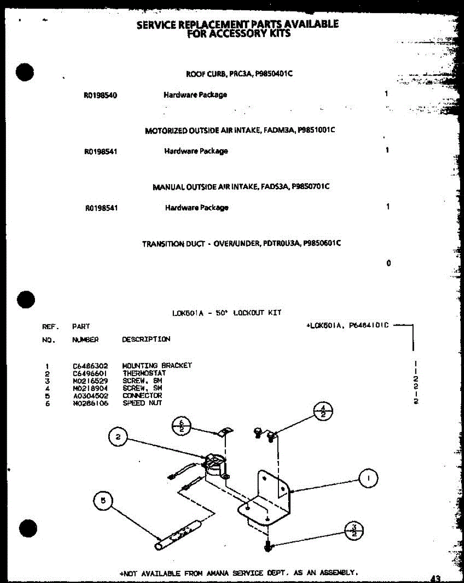Parts for Amana PECE3A/P9850501C: (Lok501a / P6484101c) Parts