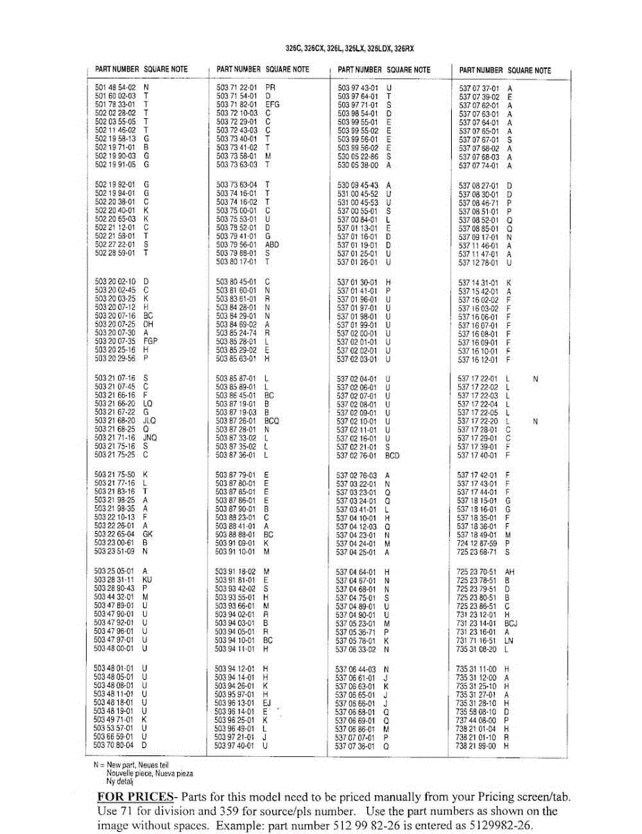 Parts for 326LDX