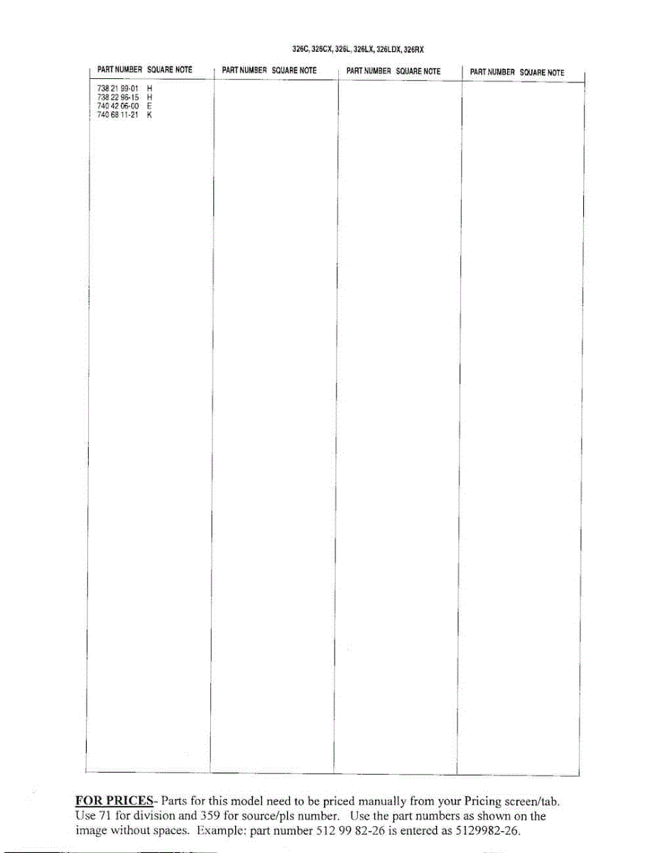 Parts for 326LDX