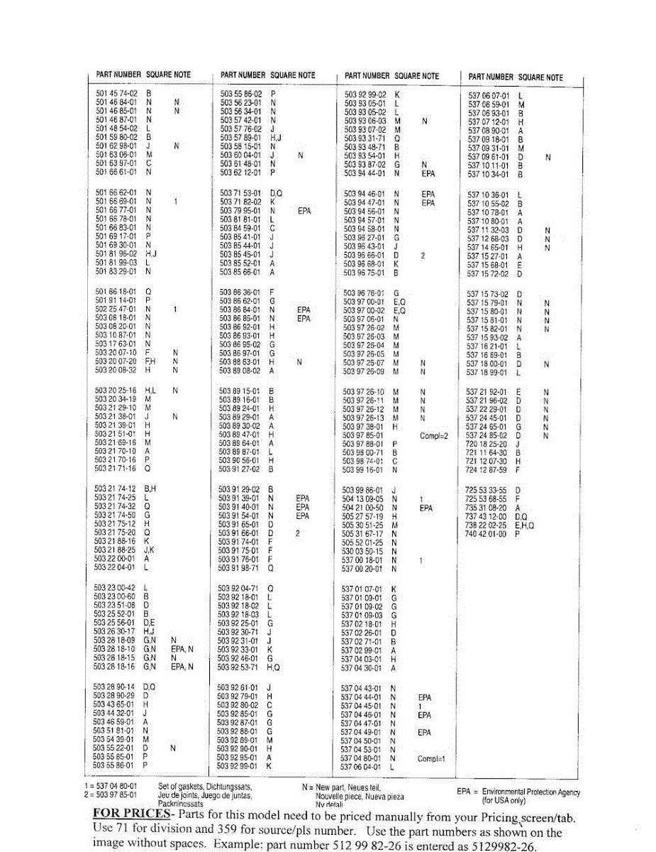 Parts for Husqvarna 359 EPA1: Parts Lists Parts