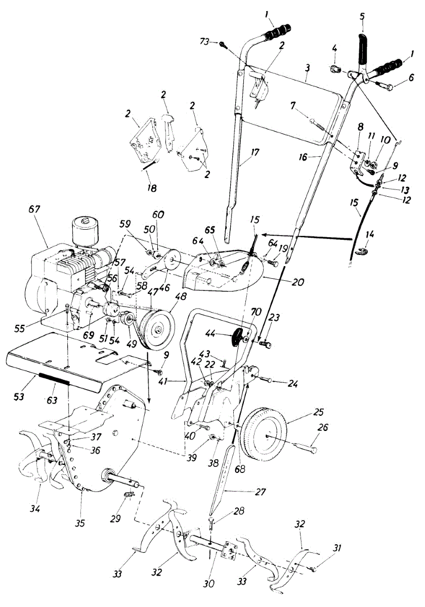 7-inch plastic cable tie secures cables to lawn mower or tiller handles. Replace when cracked, broken, or worn to keep cables properly fastened.