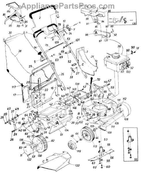 Nylon nut for lawn equipment. Secures and connects components throughout the machine. Replace if cracked, stripped, or missing for proper assembly.