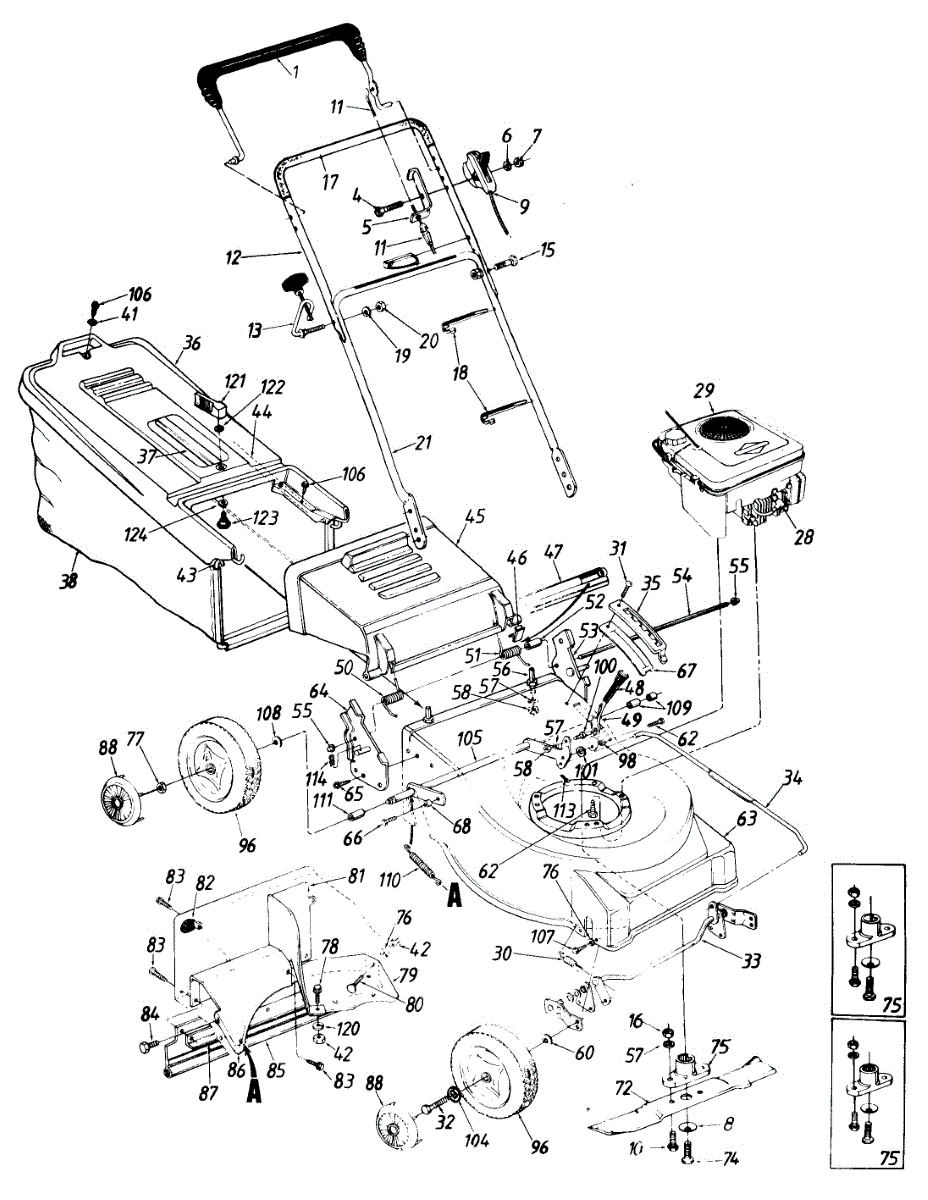 Rear discharge flap for walk-behind lawn mowers. Attaches to the back of the mower deck to contain grass clippings during operation. Replace if cracked or torn.