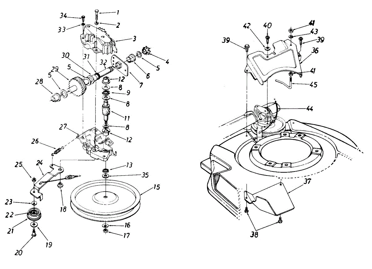 Hex screw fastener for securing lawn mower components. Replace if stripped, rusted, or missing to ensure proper assembly and equipment stability.