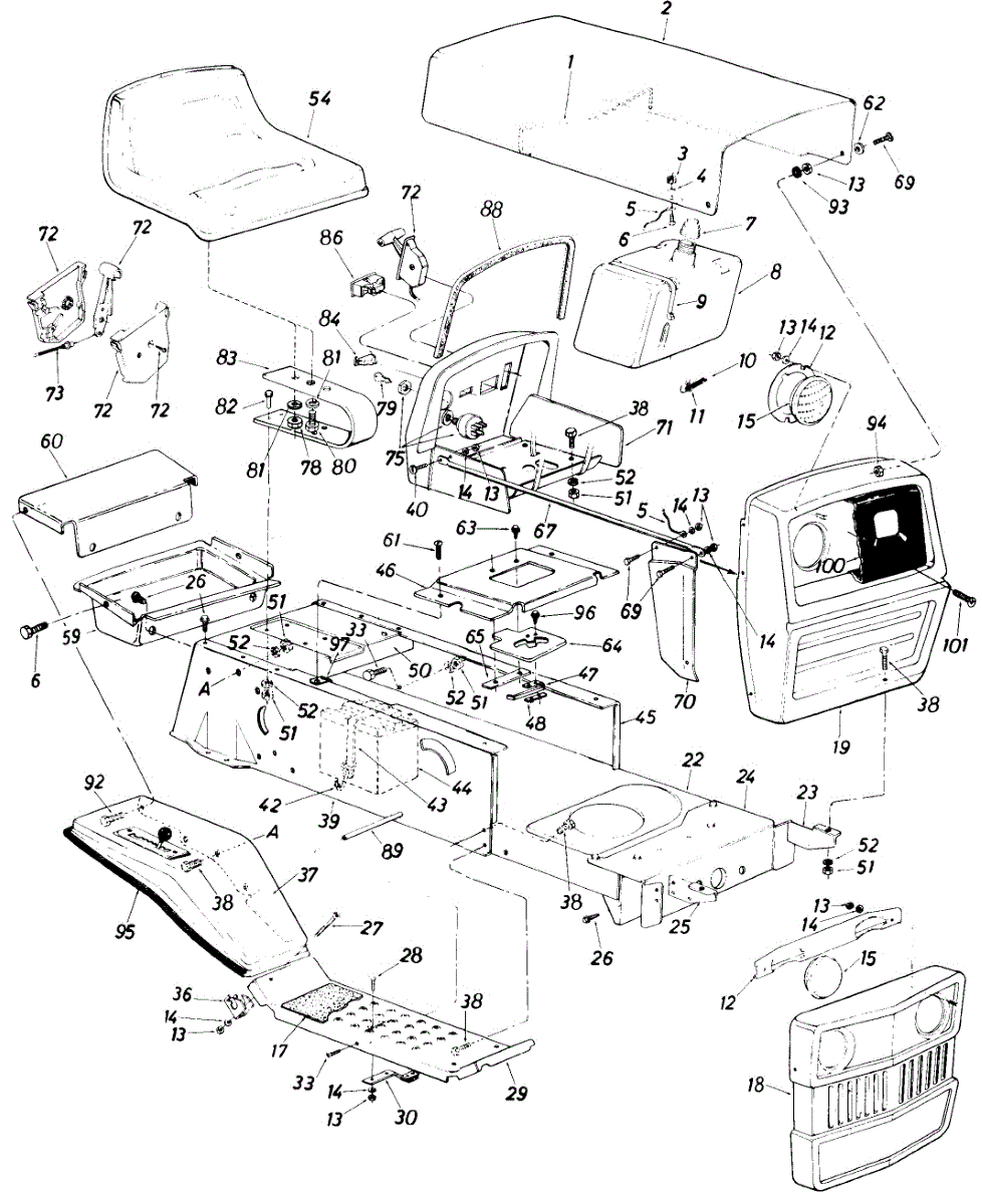 Fastening nut for lawn mowers, tillers, and outdoor power equipment. Secures components when used with a bolt. Replace if stripped, corroded, or missing.