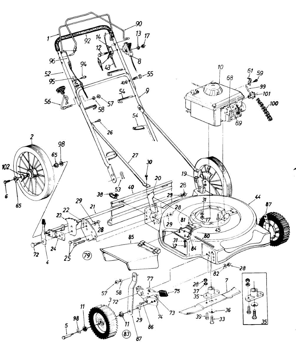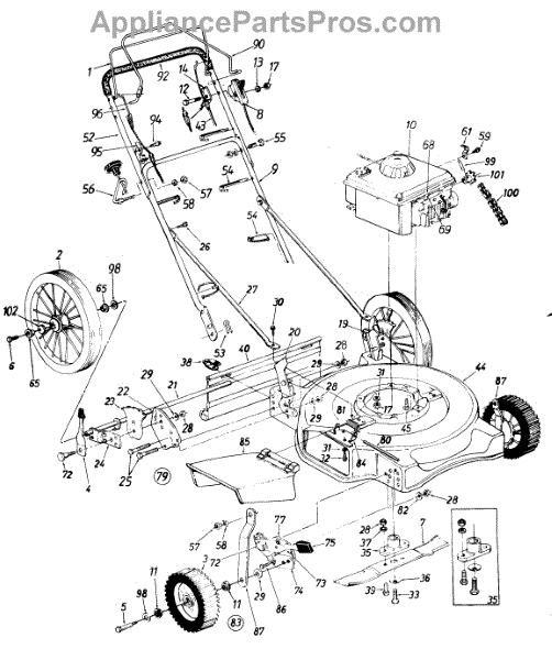 Self-tapping screw for lawn mowers and garden equipment. Secures metal, wood, and plastic parts. Replace if stripped, missing, or corroded.