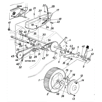 Nylon nut for lawn equipment. Secures and connects components throughout the machine. Replace if cracked, stripped, or missing for proper assembly.