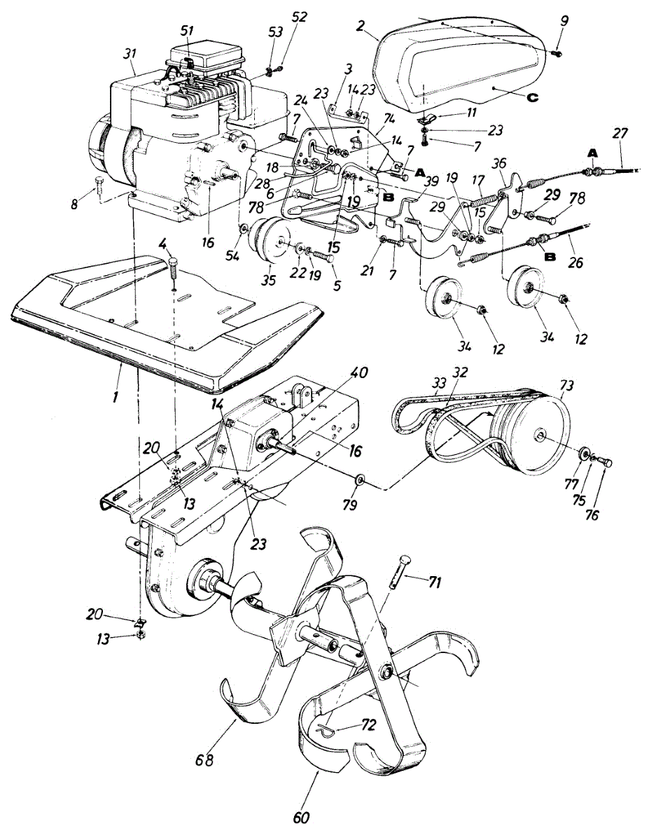 Flat washer used on tillers and outdoor power equipment. Installs under bolts or nuts to distribute load and prevent loosening. Replace if cracked or missing.