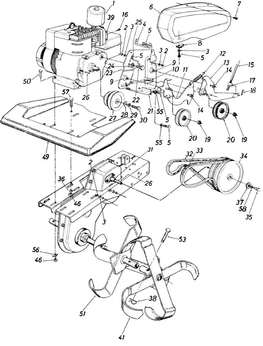 Hex screw for outdoor power equipment. Replacement fastener for lost, stripped, or damaged screws. Installs in various assembly locations.