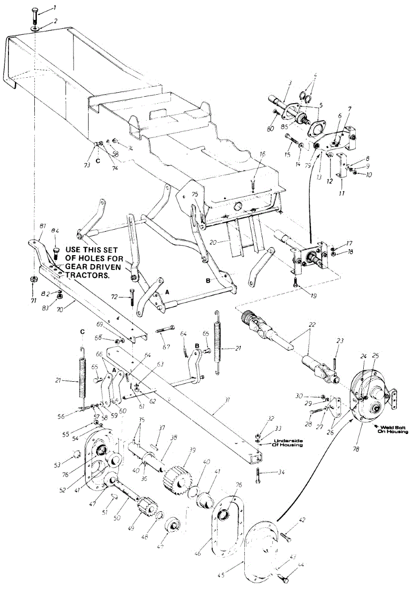 Hex screw for tillers and outdoor power equipment. Secures internal components. Replace if stripped, corroded, missing, or damaged from overtightening.