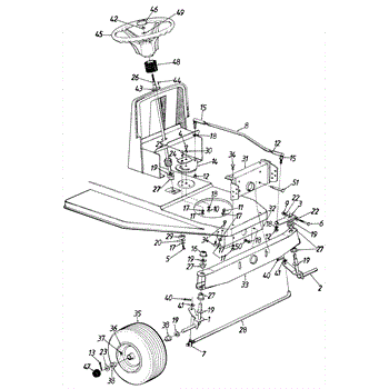 Flat washer for lawn tractors and mowers. Secures connections and distributes pressure between bolt-fastened components. Replace if worn or damaged.