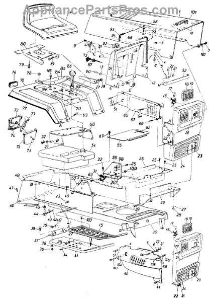 Replacement tap screw for lawn tractors and riding mowers. Secures covers, panels, and components. Needed when original screw is stripped, lost, or damaged.