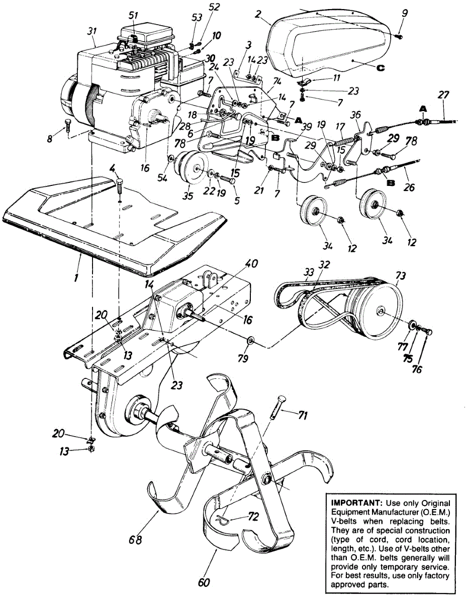 Hex screw for outdoor power equipment. Replacement fastener for lost, stripped, or damaged screws. Installs in various assembly locations.