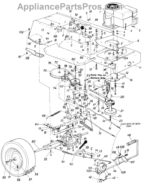 Bell washer adds spacing on shafts in lawn tractors, tillers, mowers, and chipper shredders. Replace if washer is missing, worn, or damaged during maintenance.