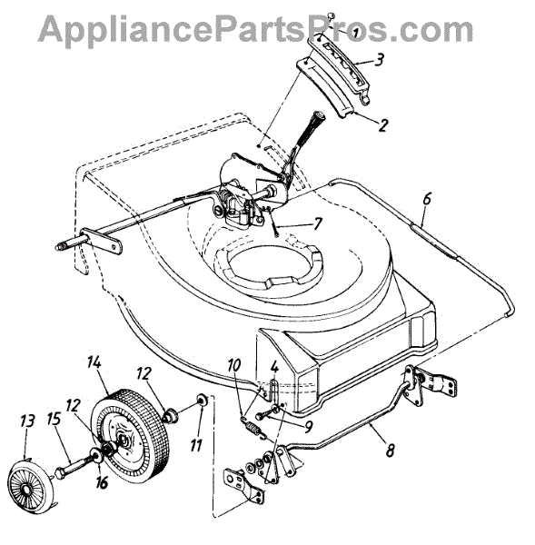 Replace your worn, cracked, or broken lawn mower wheel assembly. This complete wheel and tire unit installs on the deck for smooth rolling and maneuverability.
