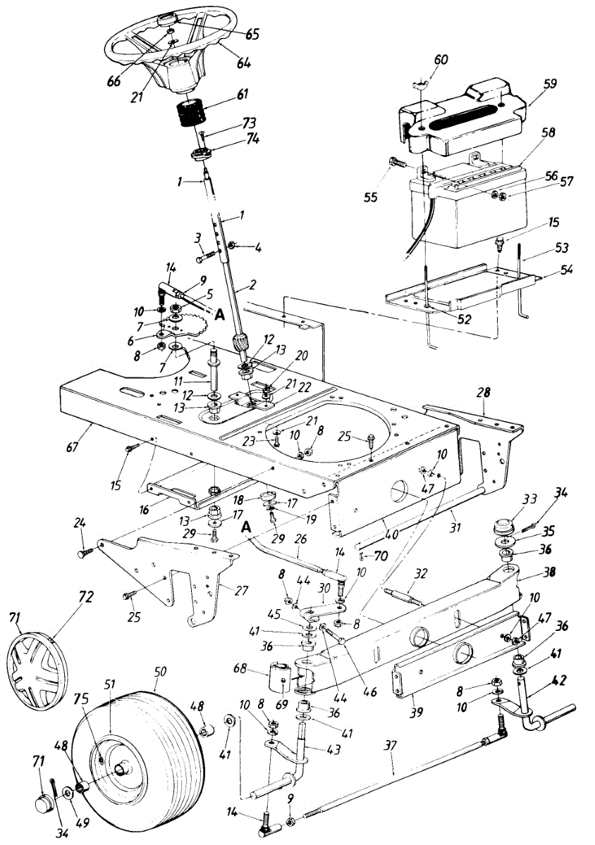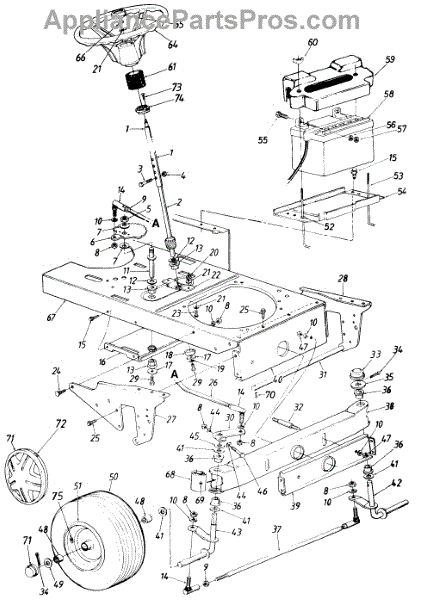 Flat washer for lawn mowers and tractors. Spreads load from bolts and screws to prevent damage. Replace if worn, cracked, or missing hardware.