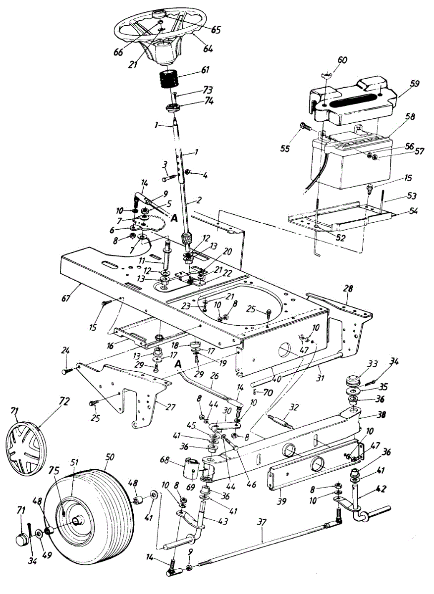 Flat washer for lawn mowers and tractors. Spreads load from bolts and screws to prevent damage. Replace if worn, cracked, or missing hardware.