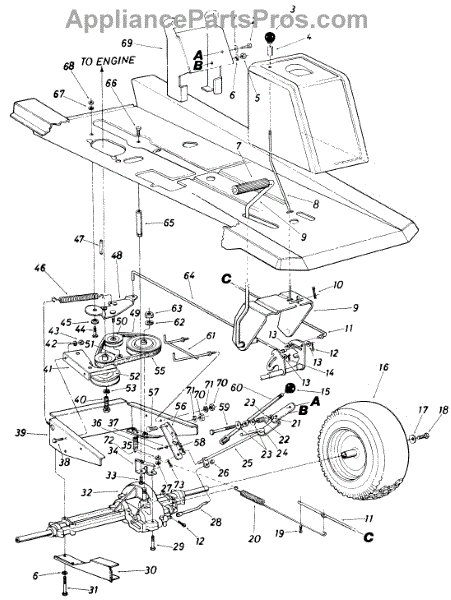 Replacement pulley for lawn tractors. Mounts to the drive system or deck assembly. Replaces worn, cracked, or damaged pulleys affecting belt operation.