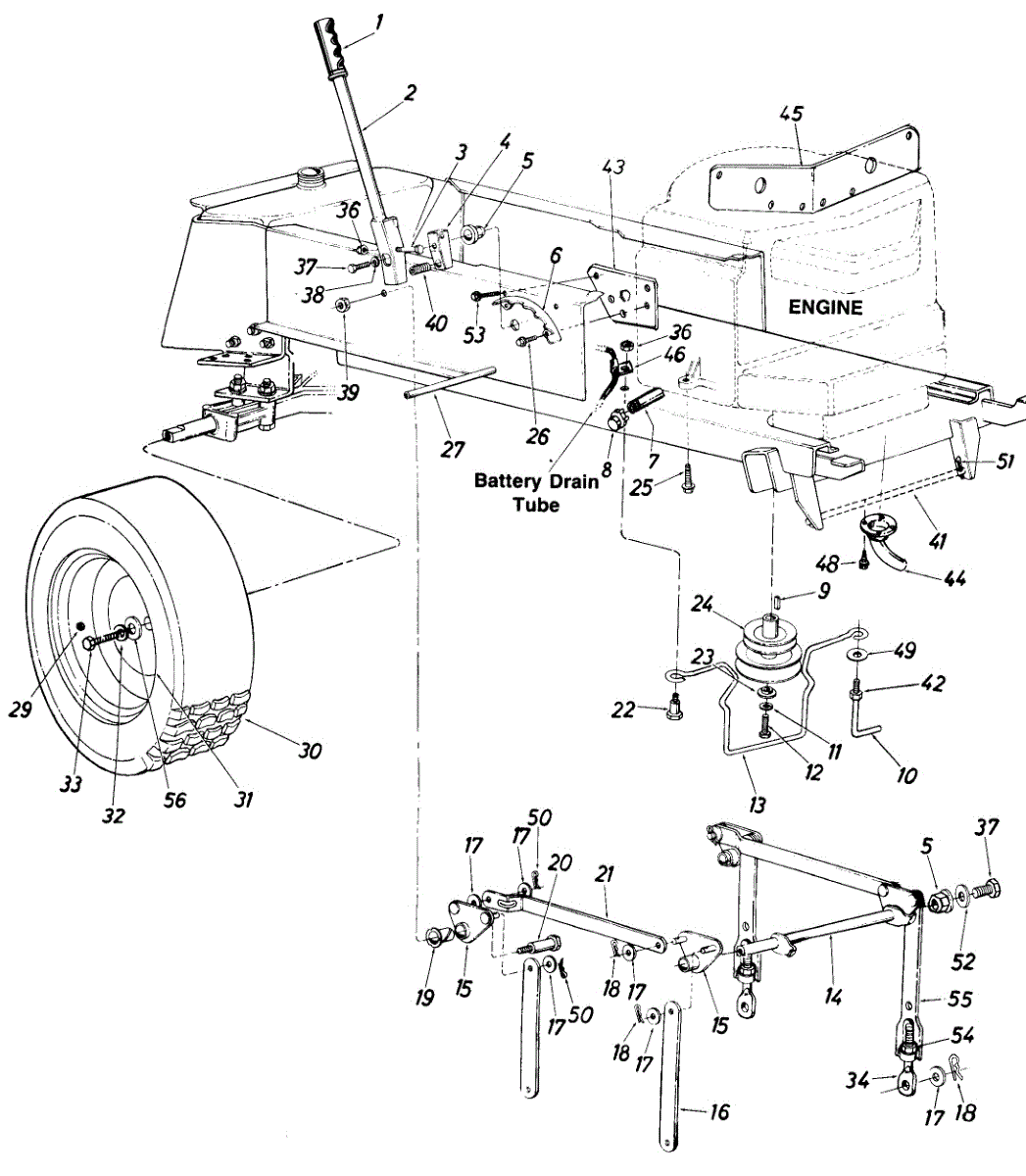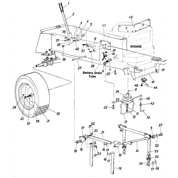 Flat washer for lawn tractors and riding mowers. Secures bolts and distributes load across assemblies. Replace if worn, corroded, or missing.