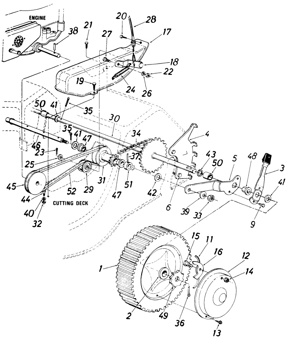 Hex screw fastener for securing lawn mower components. Replace if stripped, rusted, or missing to ensure proper assembly and equipment stability.