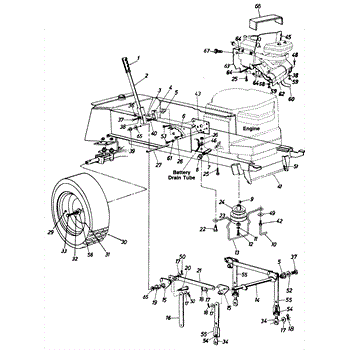 Flat washer for lawn tractors and riding mowers. Secures bolts and distributes load across assemblies. Replace if worn, corroded, or missing.