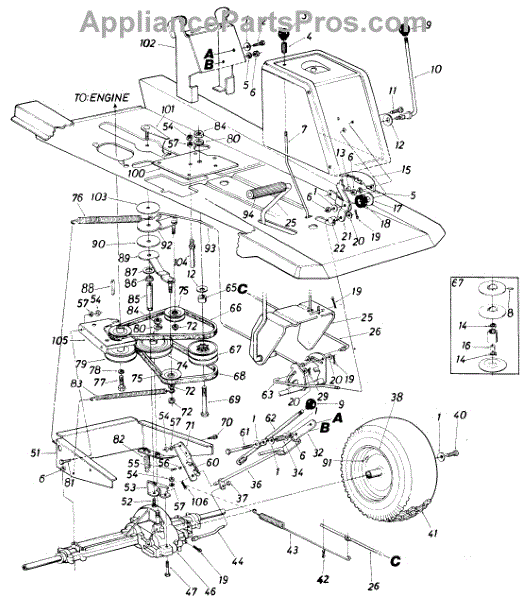 Replacement pulley for lawn tractors. Mounts to the drive system or deck assembly. Replaces worn, cracked, or damaged pulleys affecting belt operation.