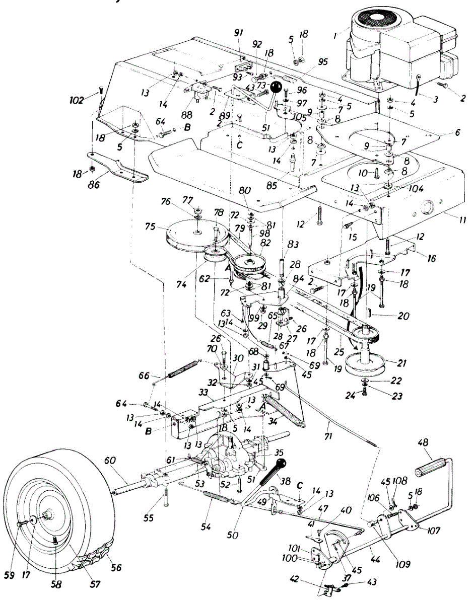 Self-tapping screw for lawn mowers and garden equipment. Secures metal, wood, and plastic parts. Replace if stripped, missing, or corroded.