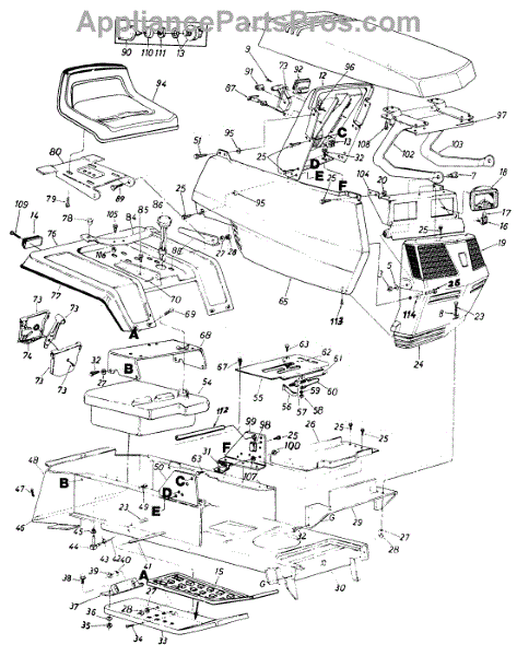 Replacement tap screw for lawn tractors and riding mowers. Secures covers, panels, and components. Needed when original screw is stripped, lost, or damaged.