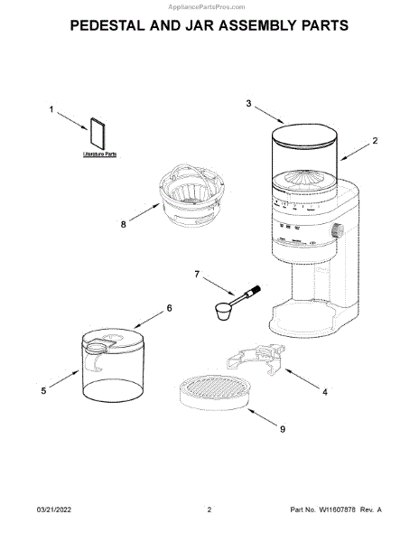 Parts for Kitchenaid 5KCG8433EAC0: Pedestal And Jar Assembly Parts