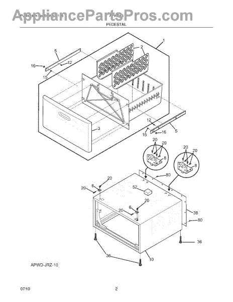 Causes may include missing hardware, damaged or worn parts in the existing pedestal, or inadequate installation. This replacement kit from Frigidaire includes mounts, brackets, screws, and leveling components to facilitate a straightforward and proper installation.